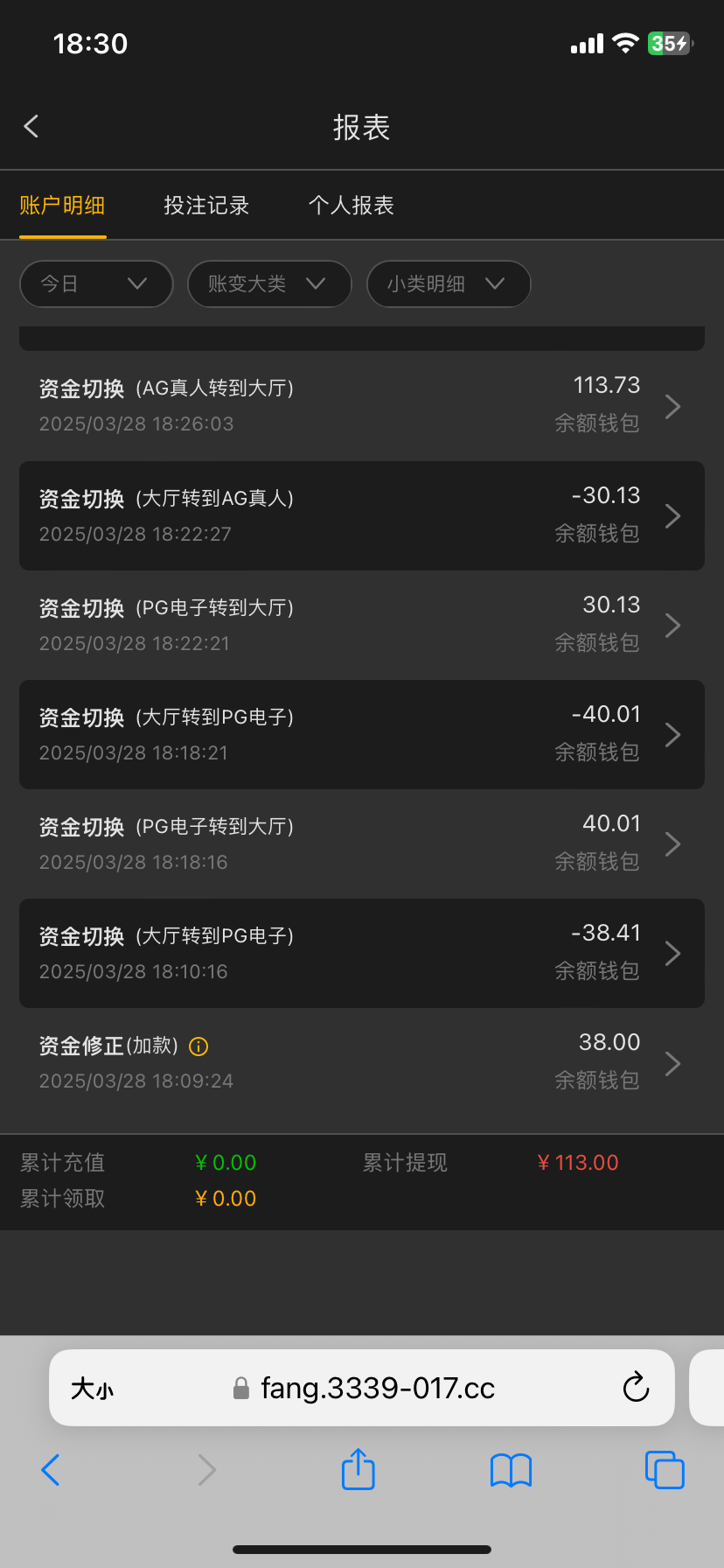 出款情况:自测(