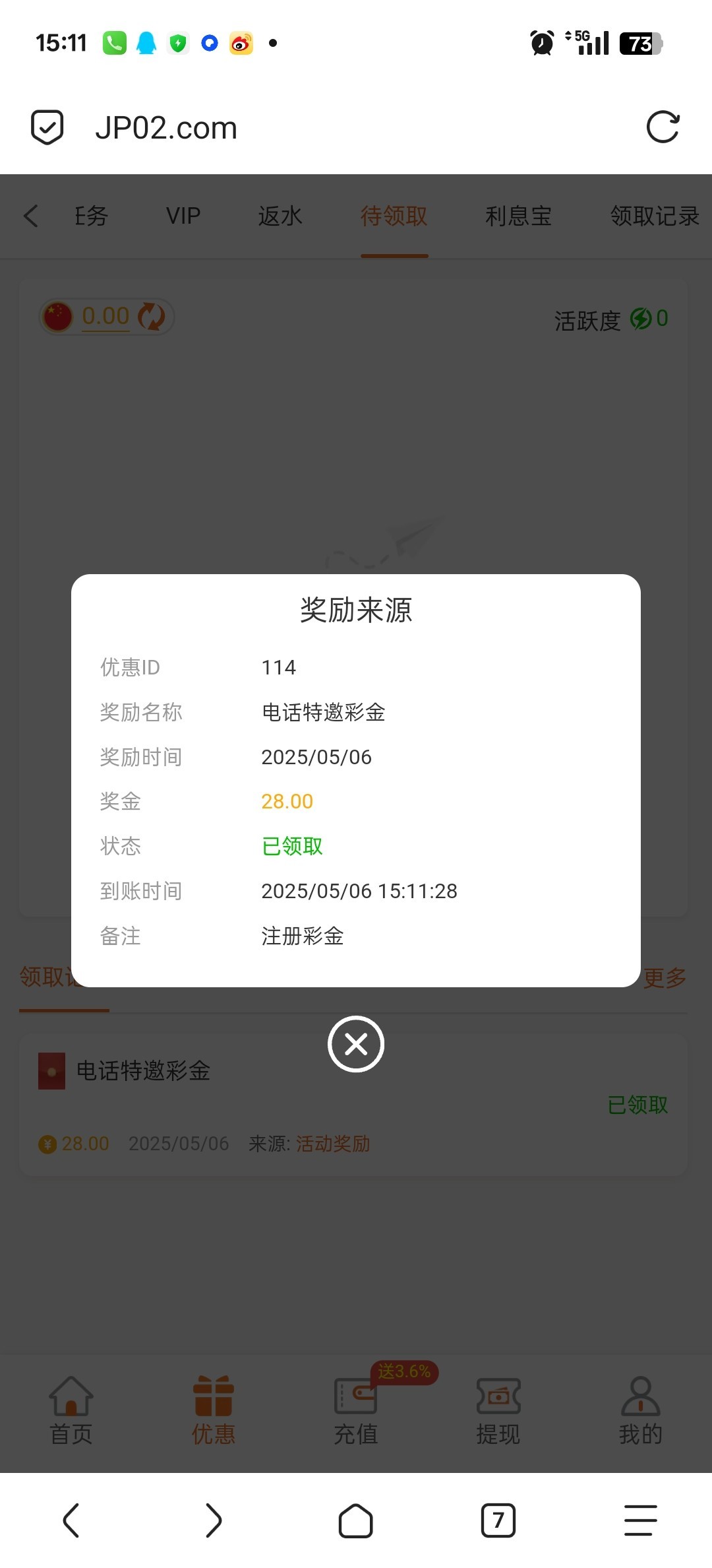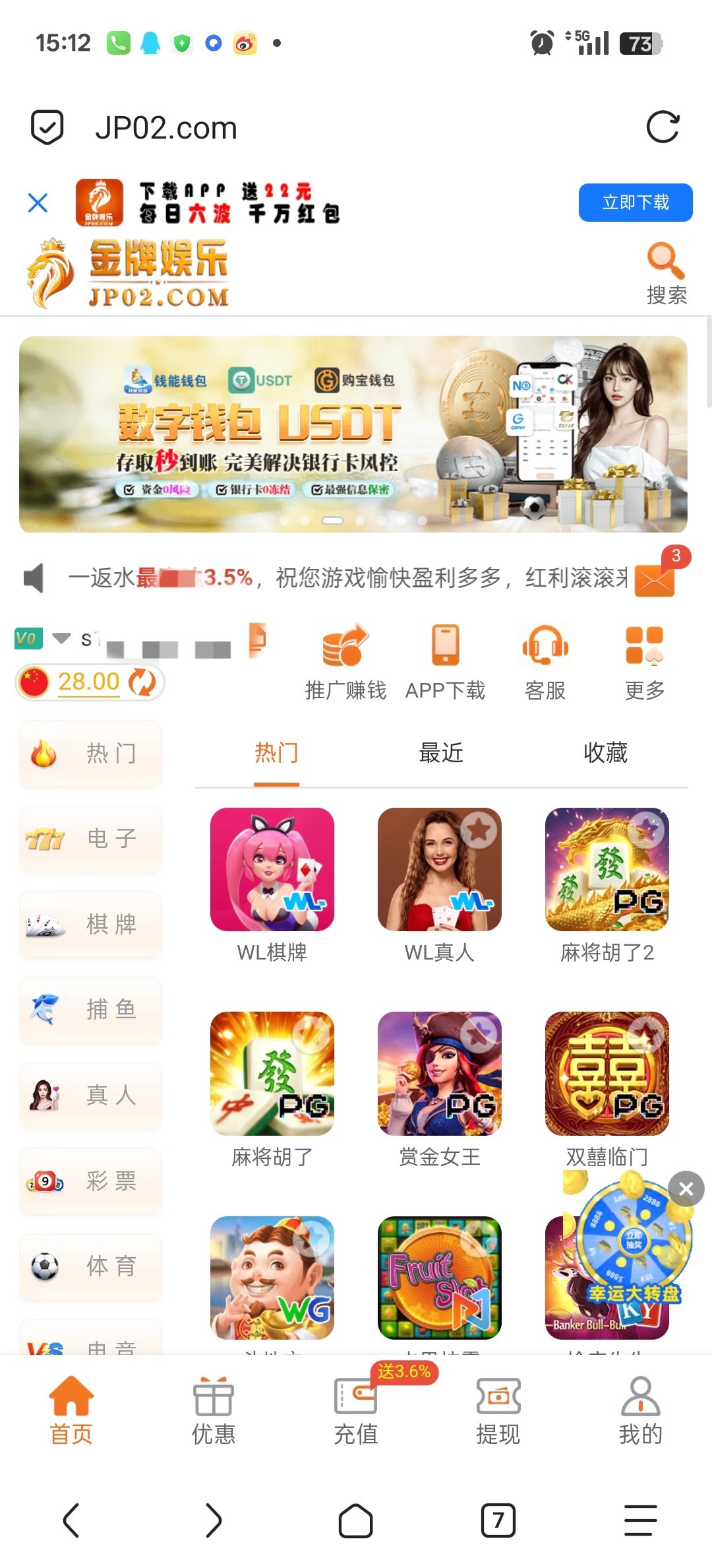 打电话过来的,金牌娱乐,有漏接的老哥可以去试试,28元只能玩wg和pg,5倍水, 19110.vip