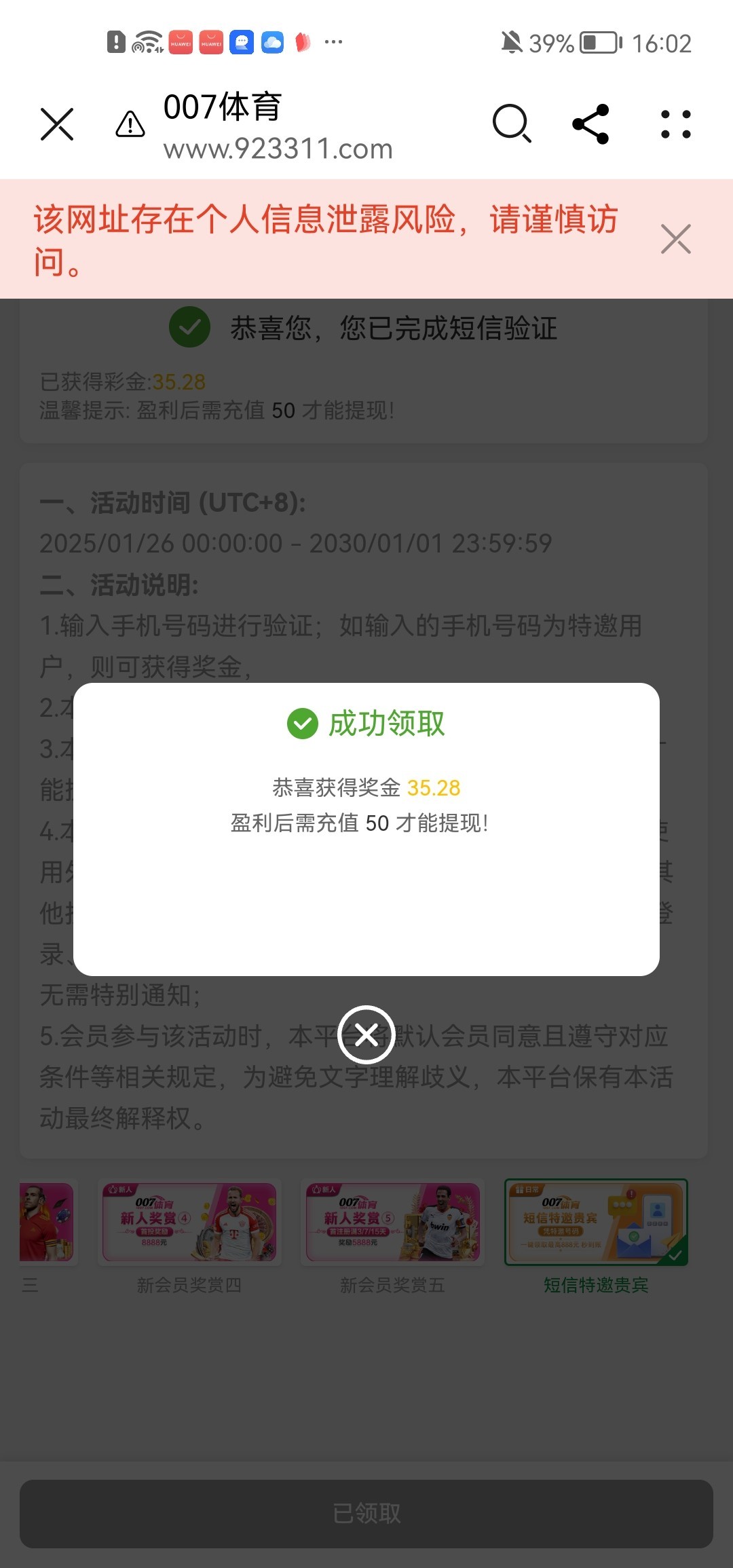 我没收到过短信,抱着试试的态度领到了, 网址1007.com