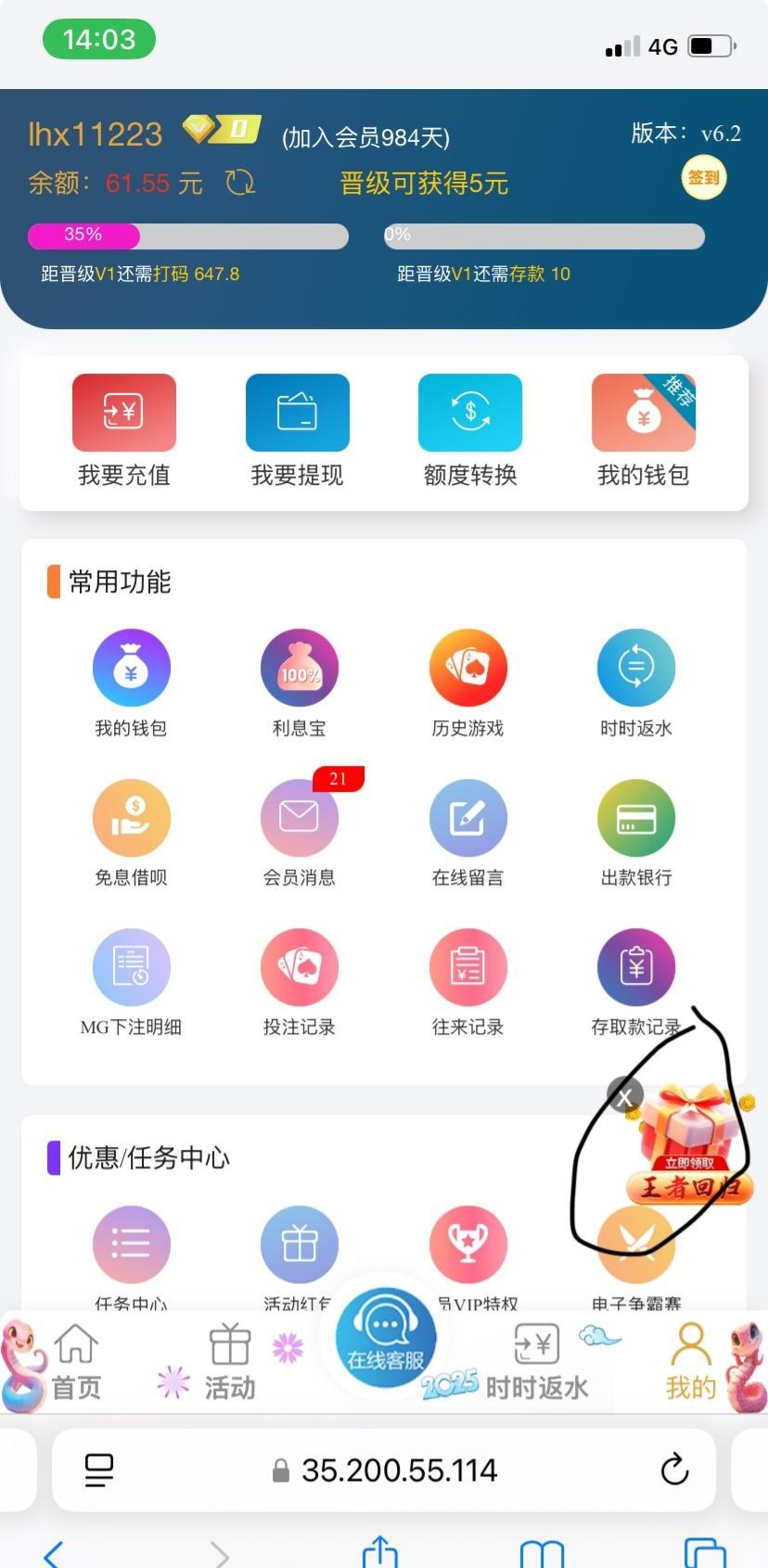 刚刚接了个电话,有号的自己去看看有没有,我一分没充过,领了58,网址 6202.com