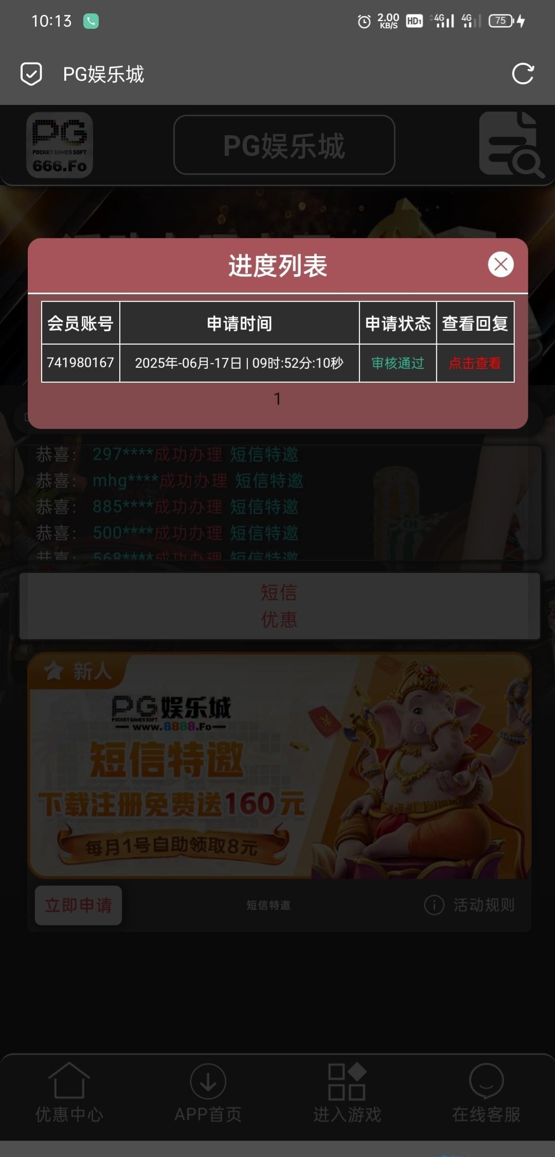 www.555.fo 没收到短信 直接申请的 没注册过的可以试试 特邀送8