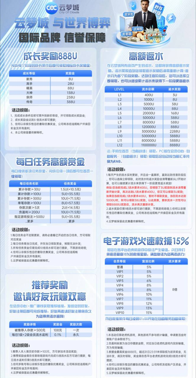 【云梦城】⚜️每日300送60电子三倍水注册送15