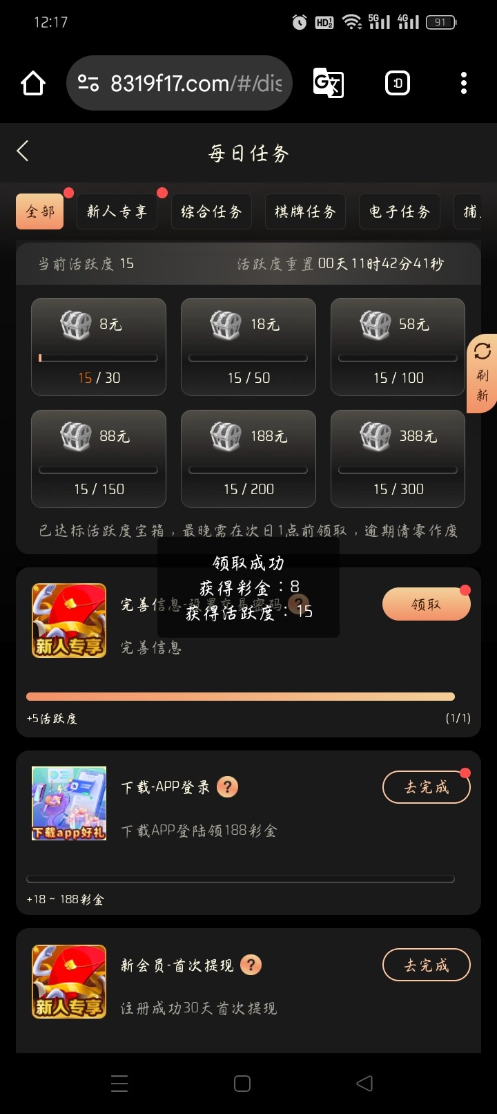 每日任务里面完善信息送8这种台一般出款半黑