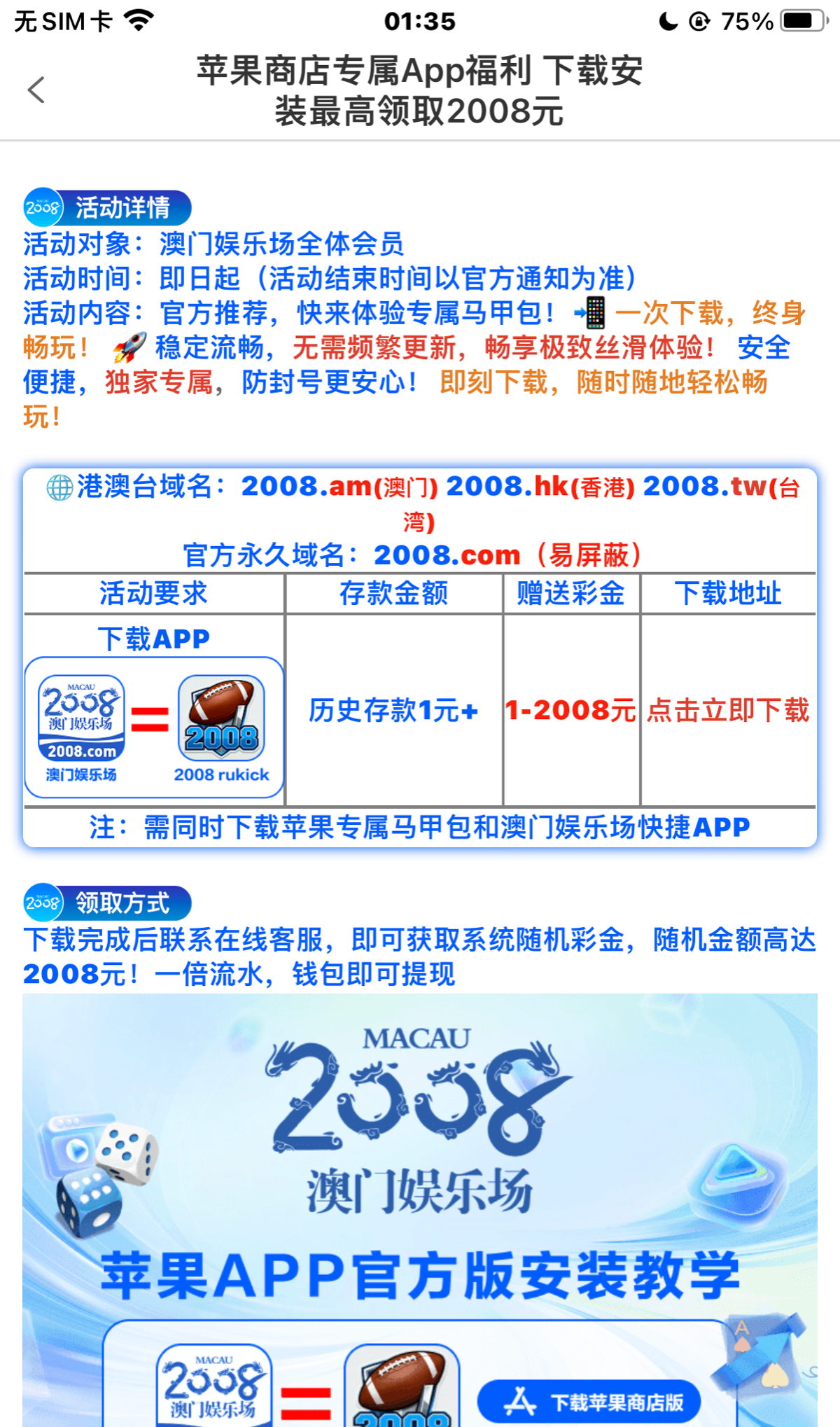 下载马甲包 充值大于1可以领 2008.am 我领了18 没打出来 21号可以领历史充值和历史注册彩金