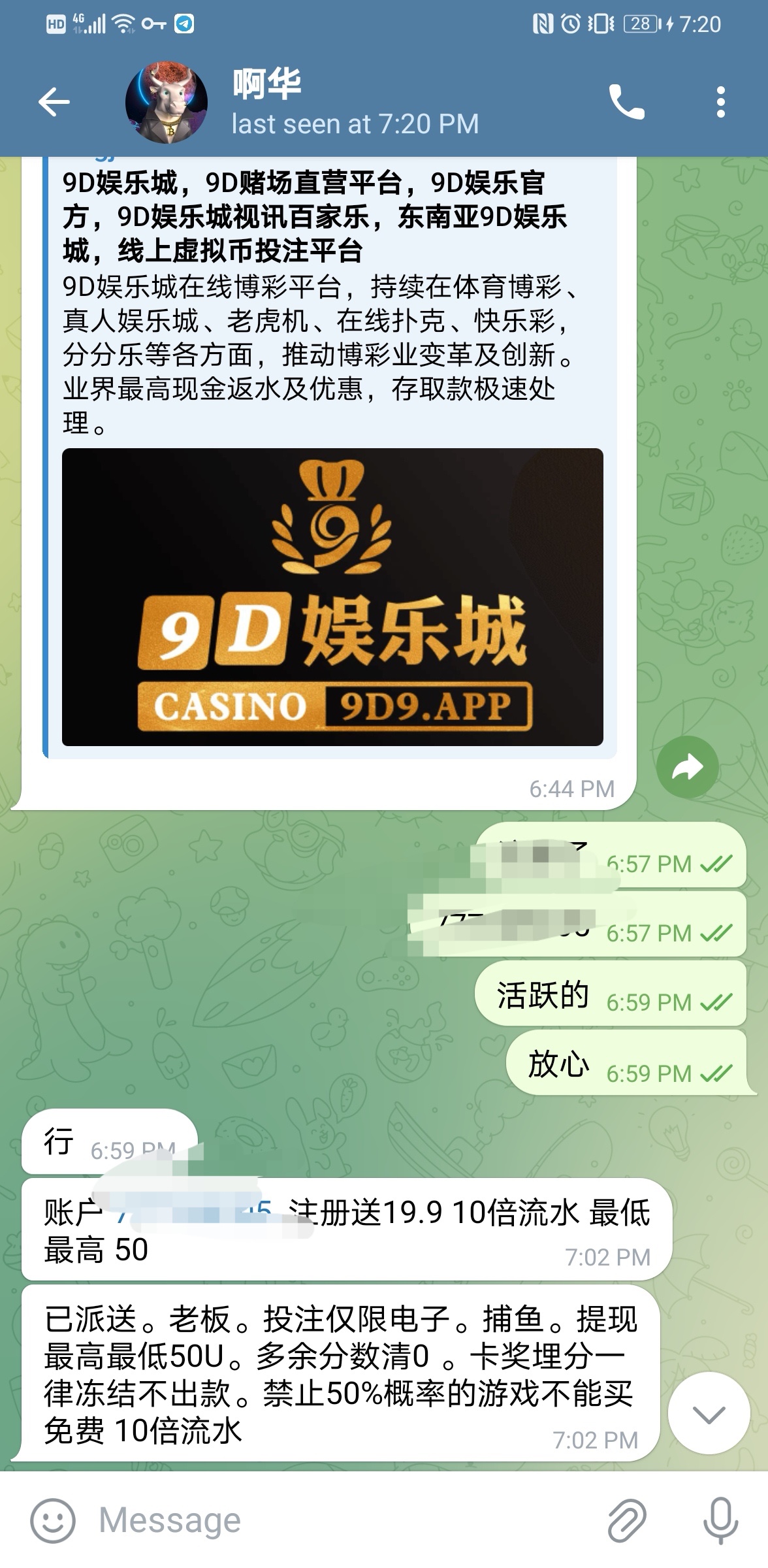 飞机客服领取 @Ahua125 问就说在群组加的 客服会发注册连接,我已经领取到了 没打出来 10倍流水 最高最低提50u 注意 绑定活跃u地址才可以领
