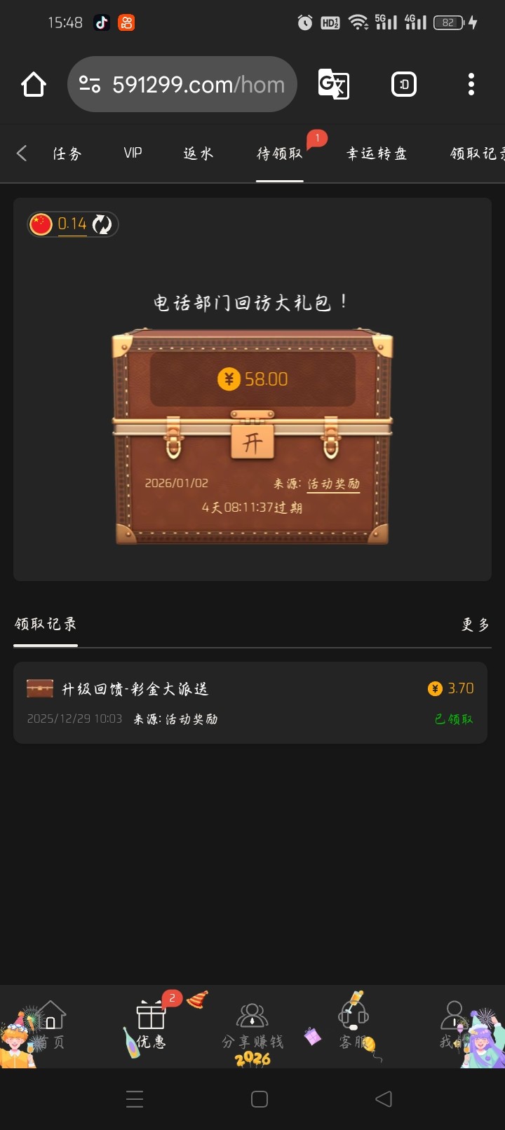 有号的去看一下,基本都有,前几天刚白嫖一把,现在又来我也才历史上充了100,送了我58