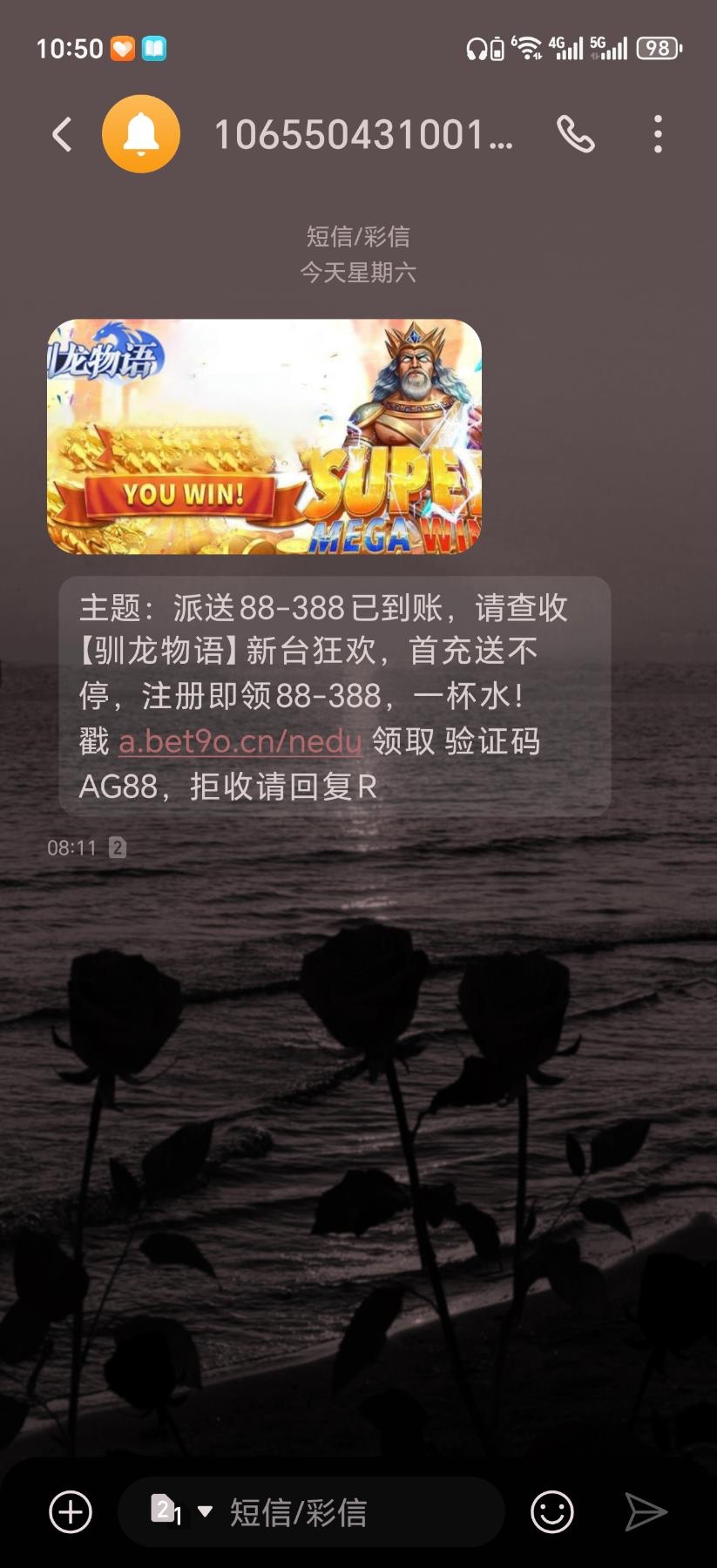 收到短信的哥们去,注册找客服申请38,链接a.bet9o.cn/nedu,我打死了没打出来,出款自测吧,禁充值