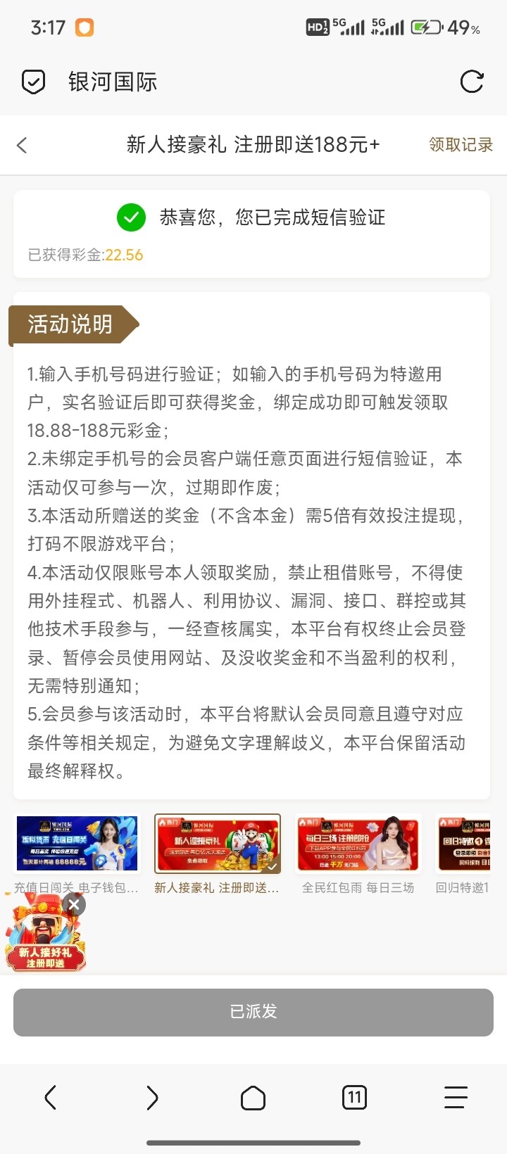 还有特邀,回归彩金可以看一下