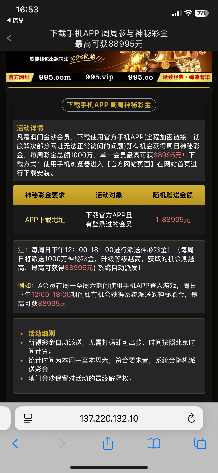 今天看短信的时候看见的特邀可以领29-99盈利290可以提现10倍流水我手机欠费了没试出款未知禁止充值 出款自测链接995.com 995.vip