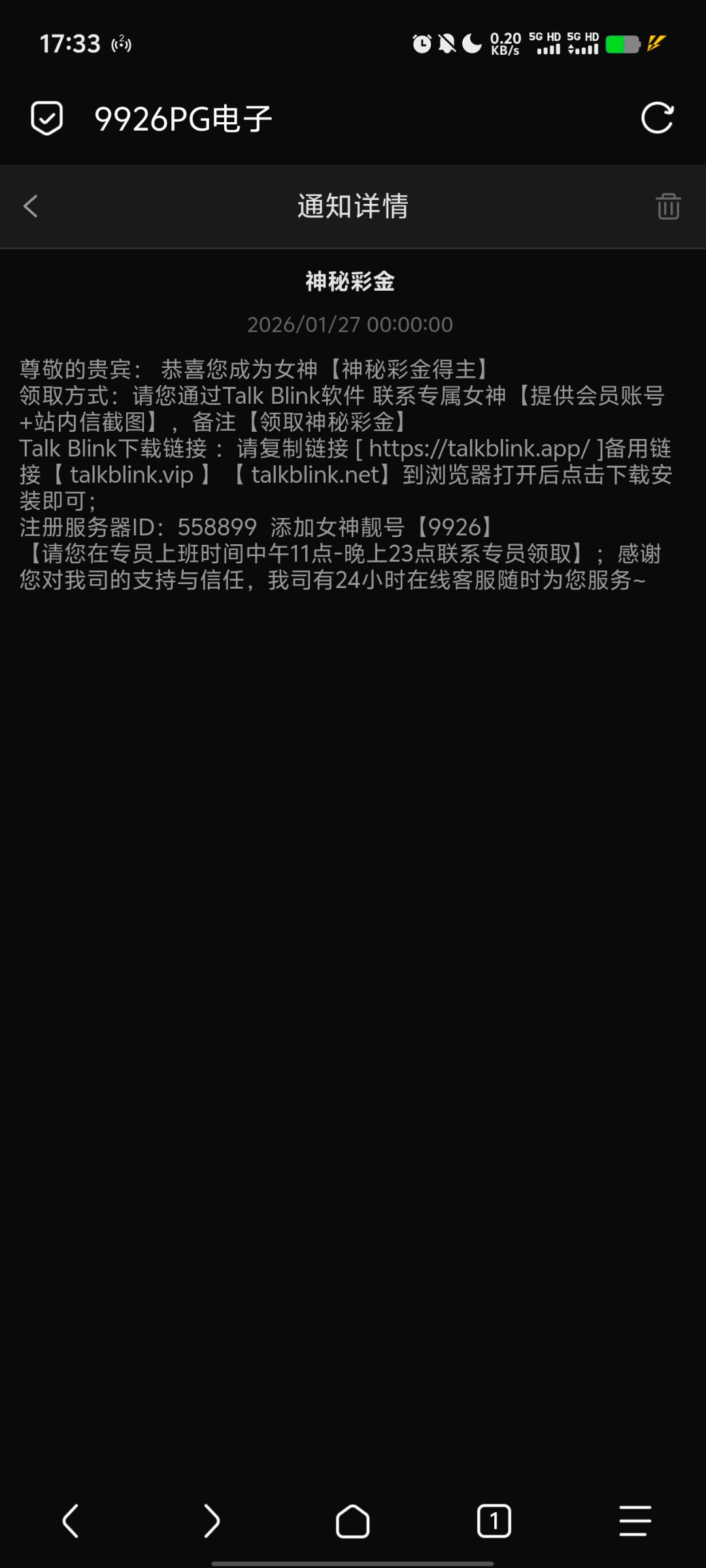 链接9926.com,收到站内信,去找客服即可,连宋三天