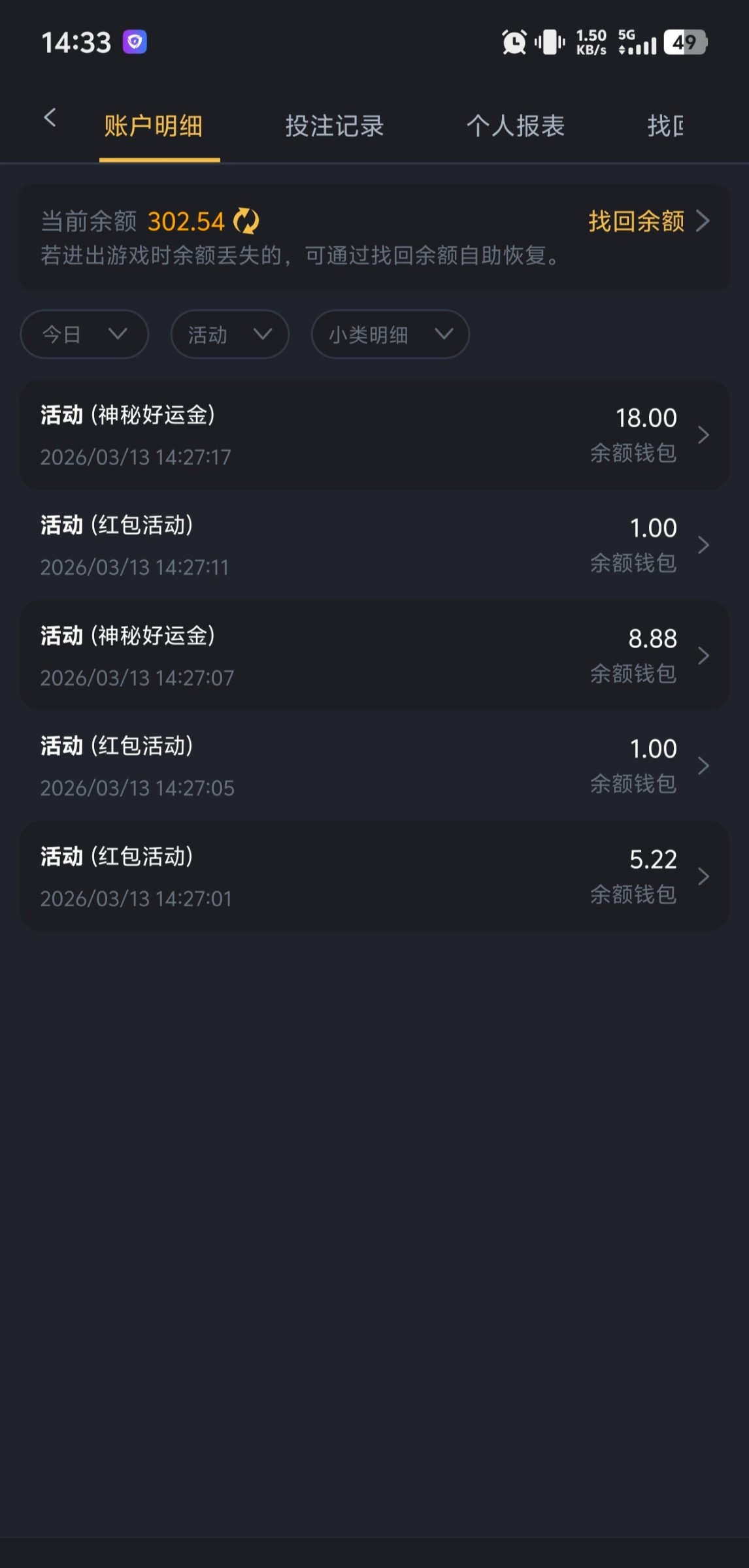 有号的上去看一下,我刚刚上去看有一个幸运福袋抢了五块加两个神秘好运金一共三十多,有号的上号看下有没有