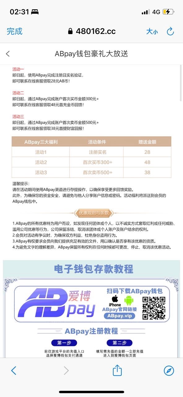 亲,ABpay钱包活动已结束了哦,请您在我司APP首页,点击优惠,查看我司现有的活动详情,以及领取的方式,谢谢